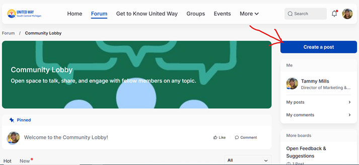 You’ll do this by clicking “Create a Post” in the upper right hand corner.